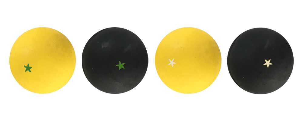 < Volver a todos los productos Pelotas de goma Cuadro Características técnicas Pelotas de gomaDiámetro: 46,5 mm.Peso: 70/75 grs. Modelos Pelota negra, cuadro amarillo Pelota negra, cuadro verde Pelota blanca, cuadro amarillo Pelota blanca, cuadro verde Pelotas de goma Estrella Características técnicas Pelotas de gomaDiámetro: 46,5 mm.Peso: 66 grs. Modelos Pelota negra, estrella blanca Pelota negra, estrella verde Pelota amarilla, estrella blanca Pelota amarilla, estrella amarilla
